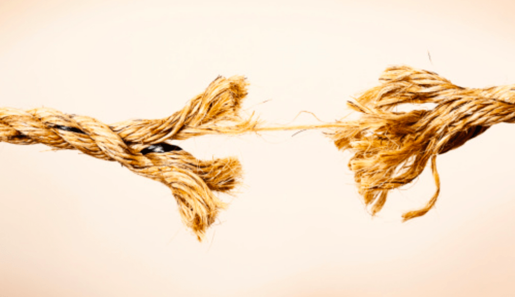 Either over time or rather suddenly, a series of events throw off the string’s equilibrium. A ton of weight has amounted in the center causing significant tension. Now you’ve started to lose control. You feel powerless, out of balance, just waiting for that last trigger and final weight to snap the string.